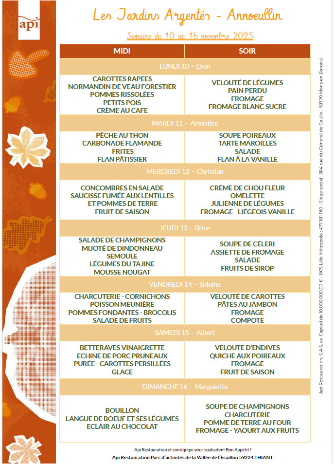 Menu de la semaine 46