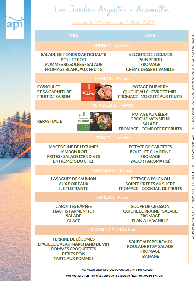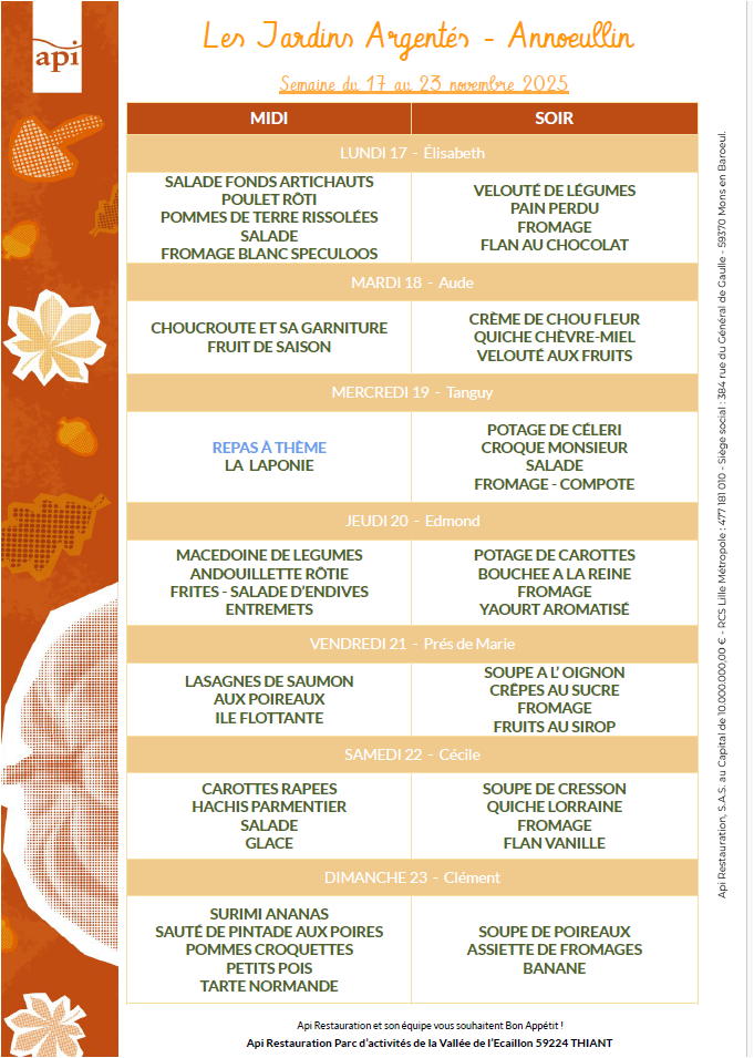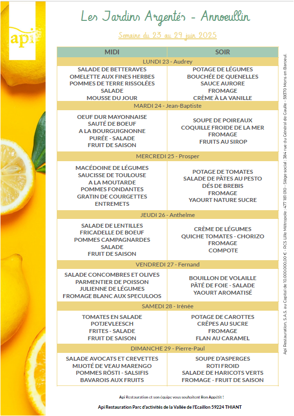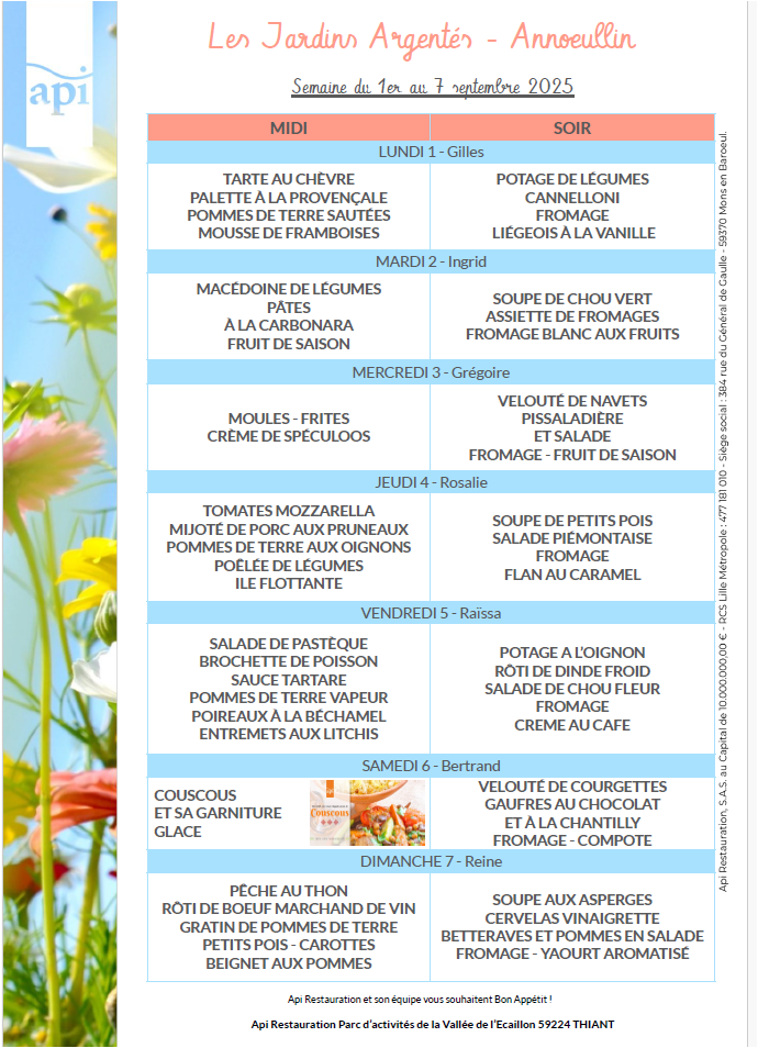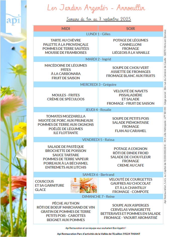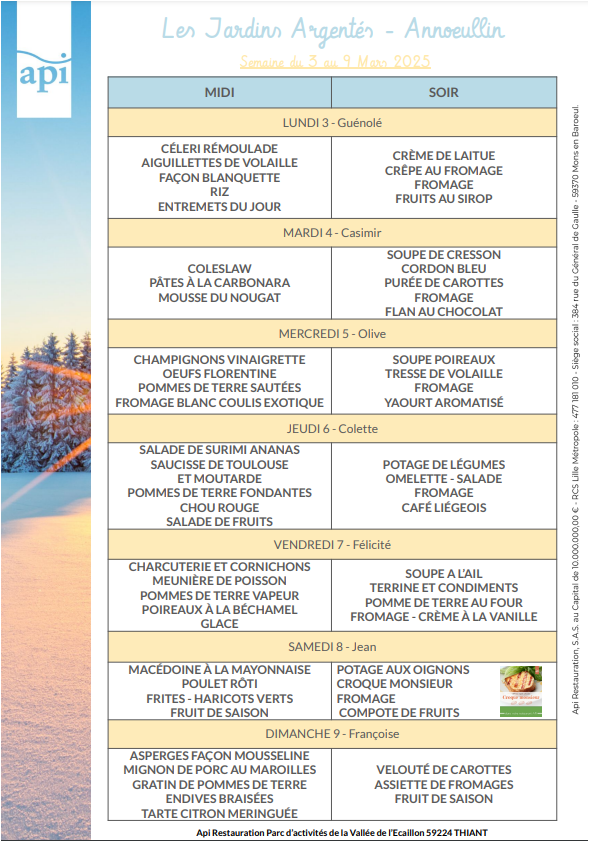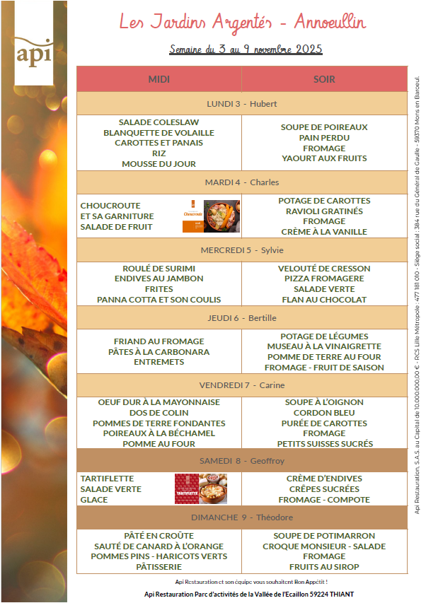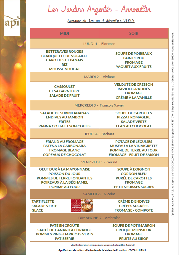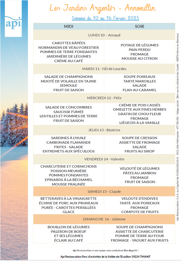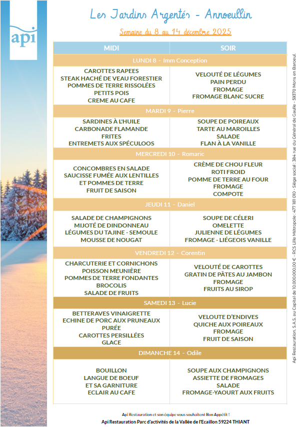 Menus de l’année 2025