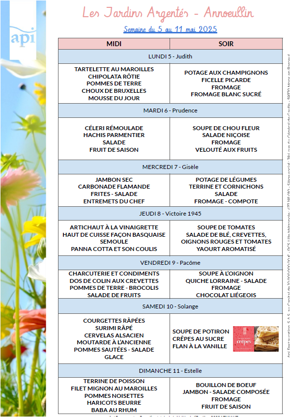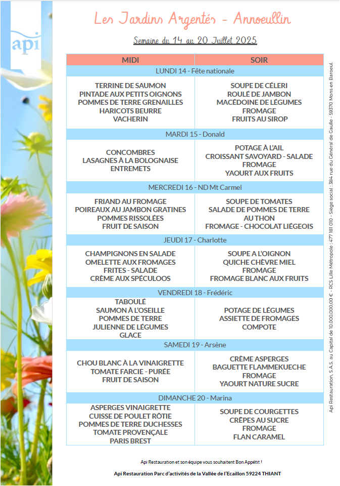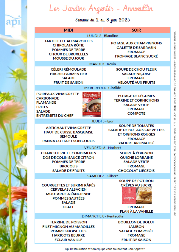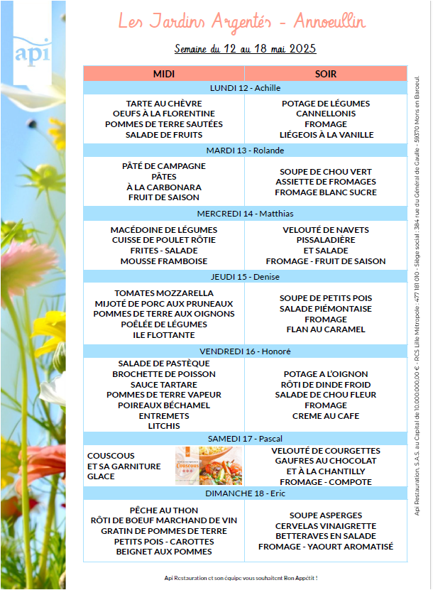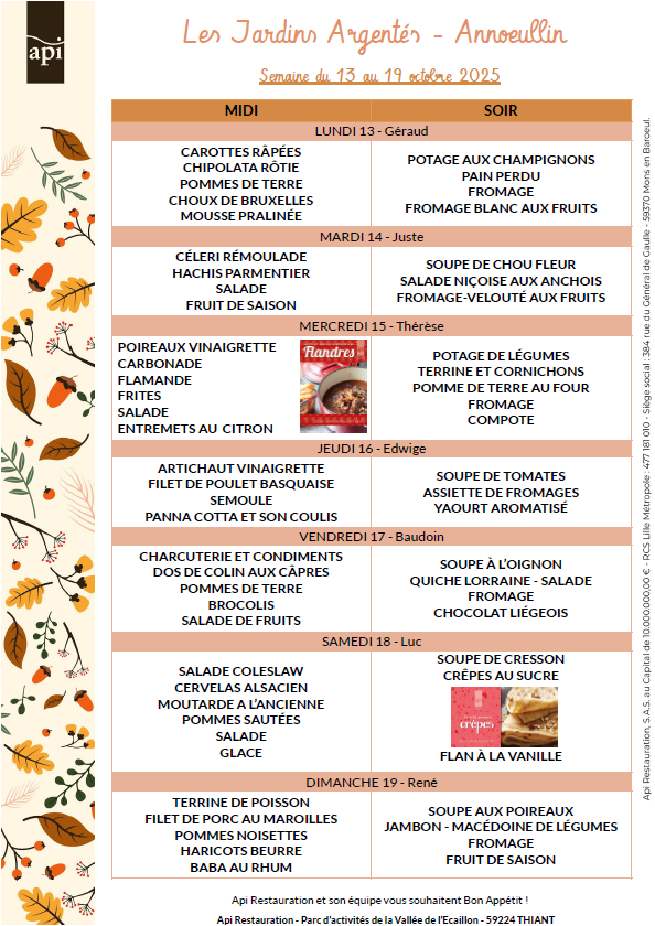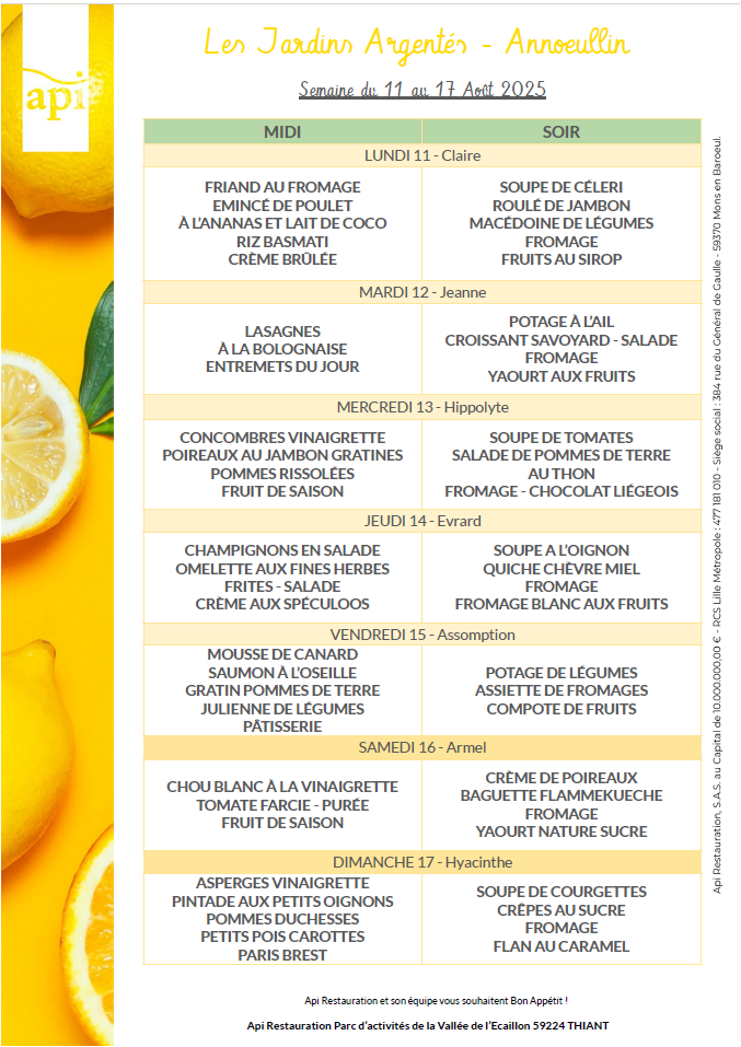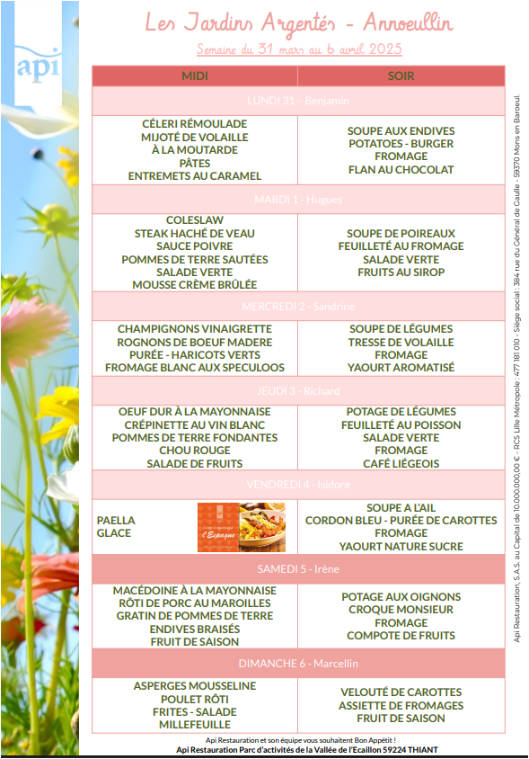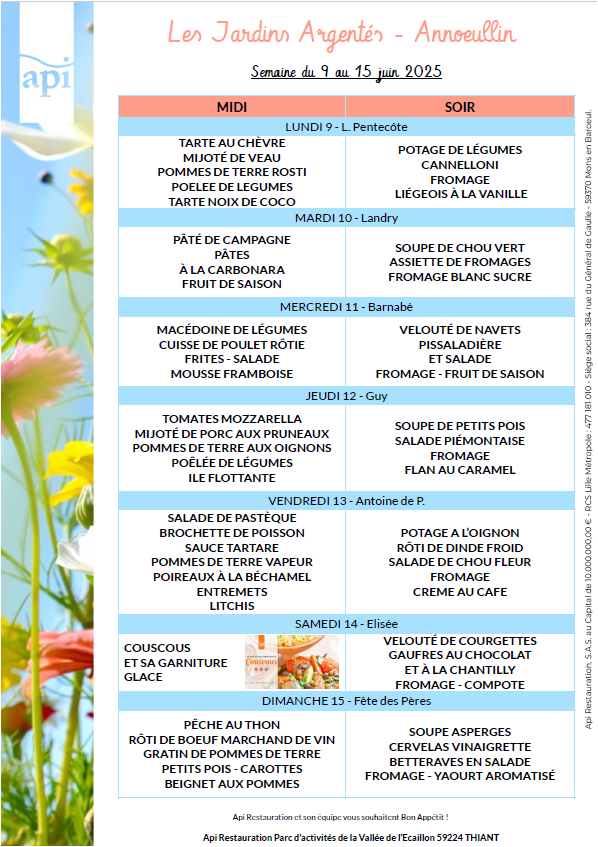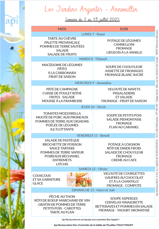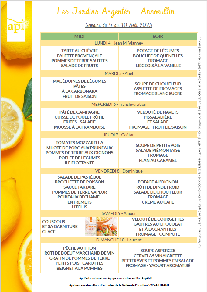 Menus de l’année 2025
