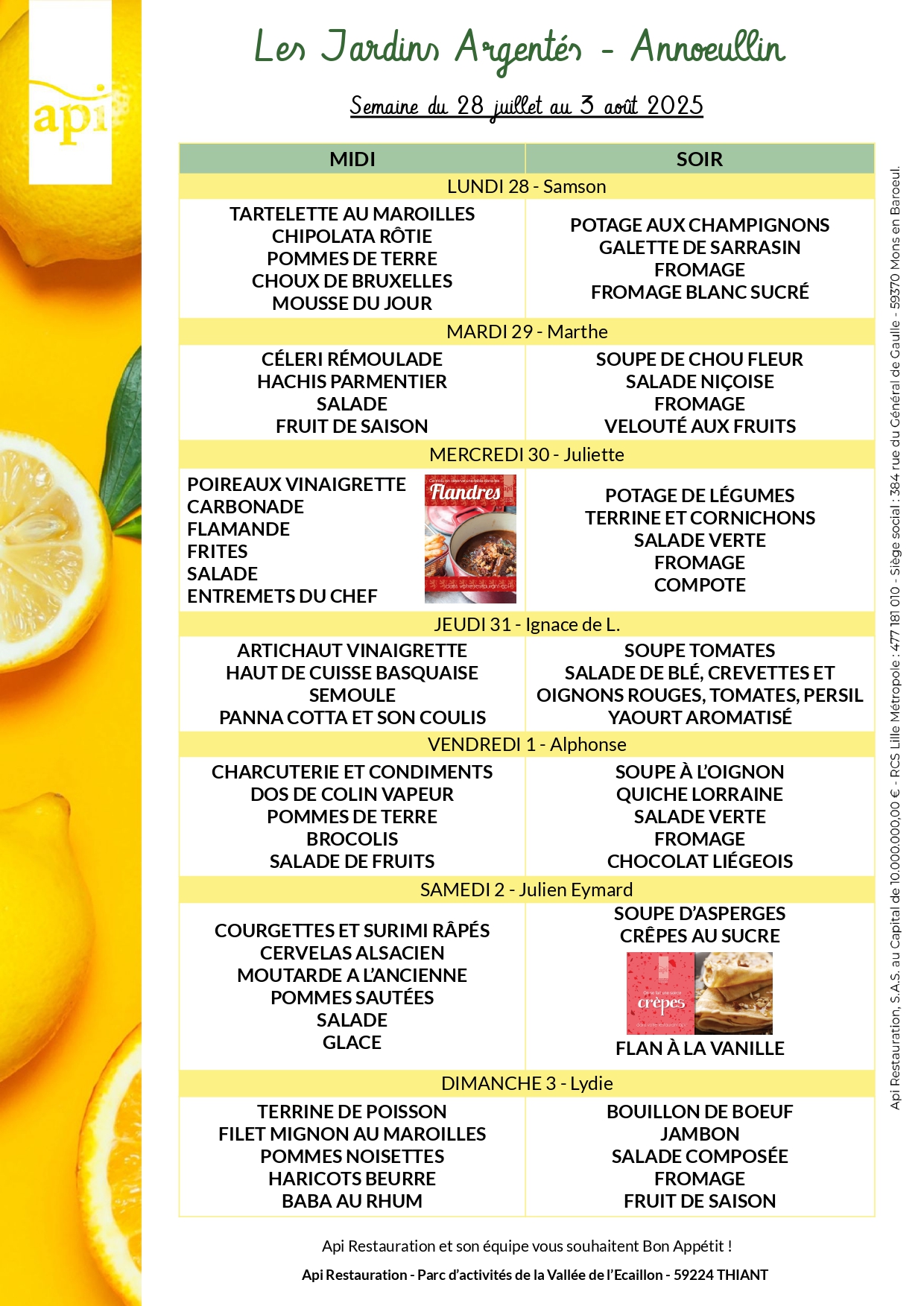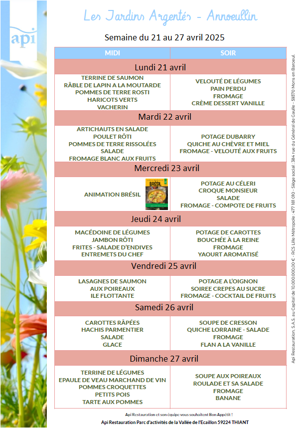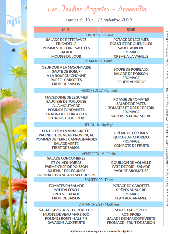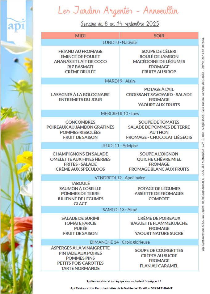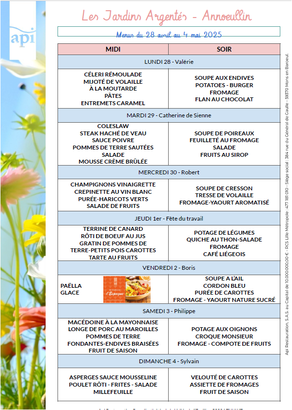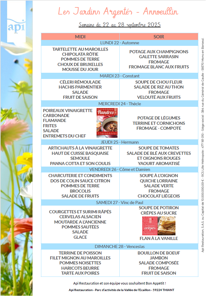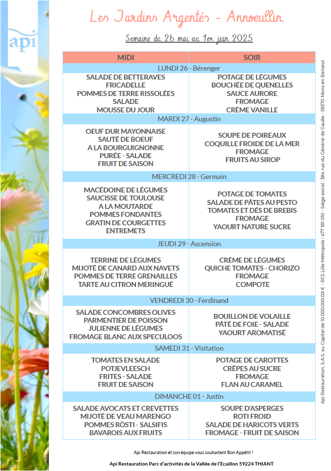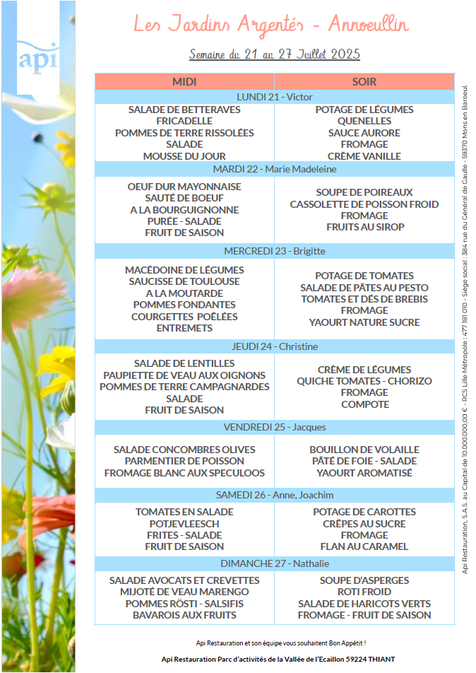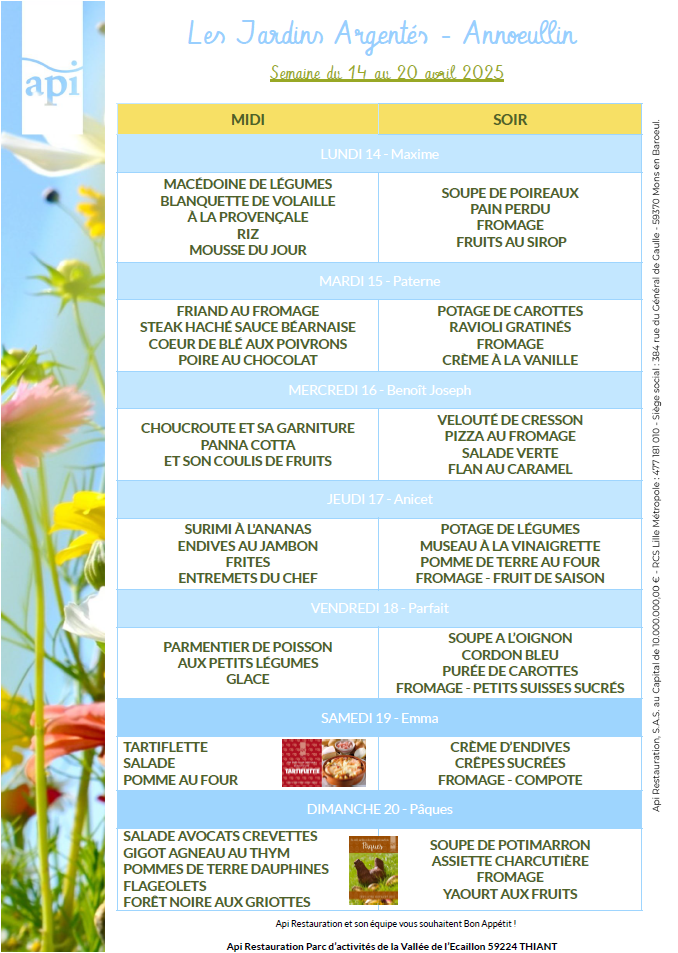Menus de l’année 2025