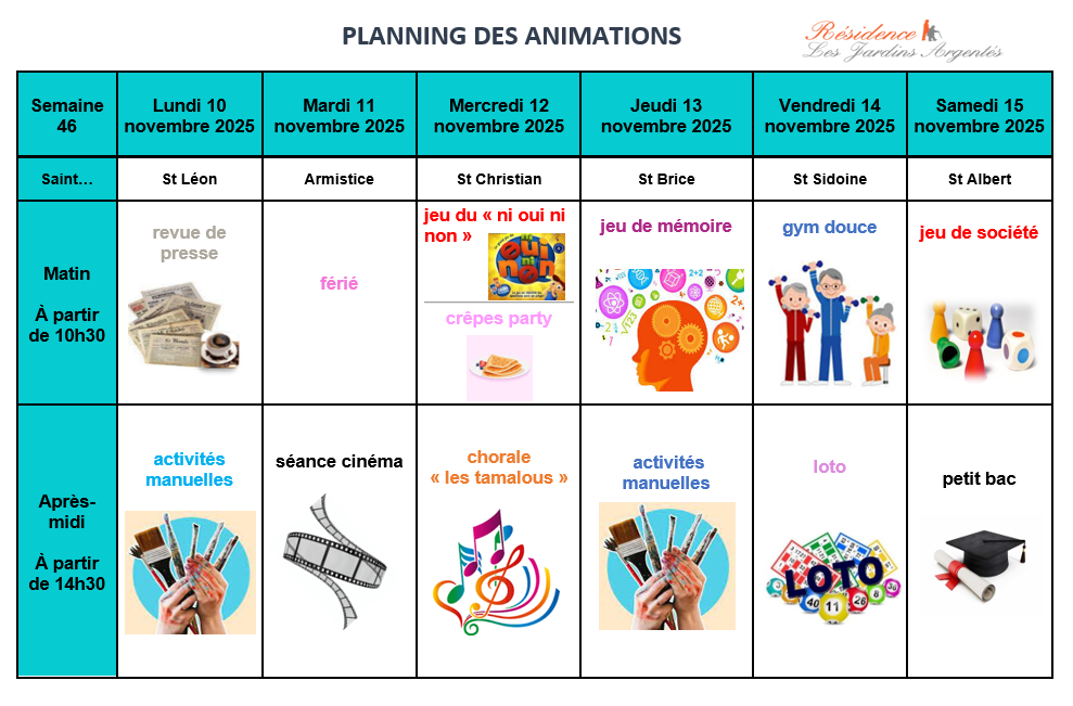By Ehpad Les Jardins Argentes10 novembre 2025Plannings Animation
